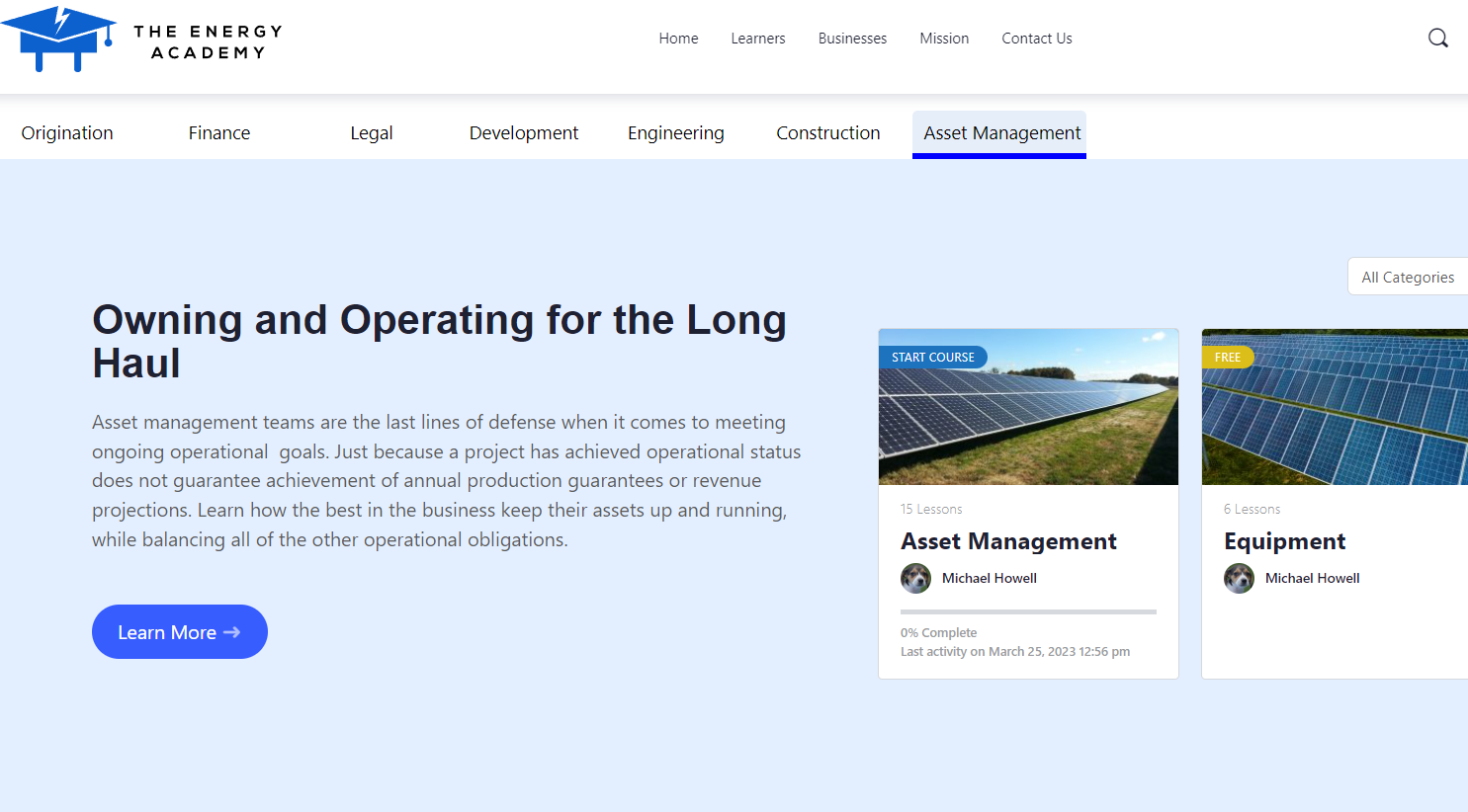 Trial by fire, learning by osmosis, and building while flying are experiences we’ve all endured—none ideal. The Energy Academy expedites the onboarding and advancement of renewable energy professionals with curated curriculums, alleviating the heavy training burden on your senior teams.